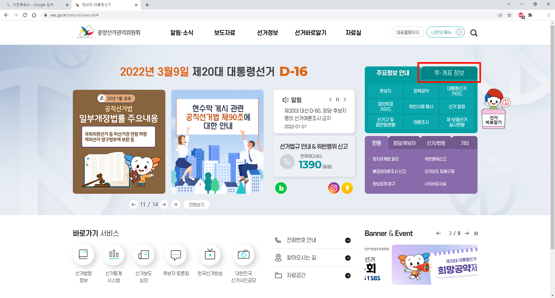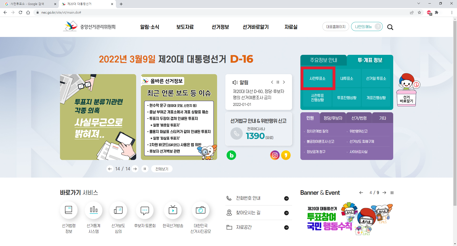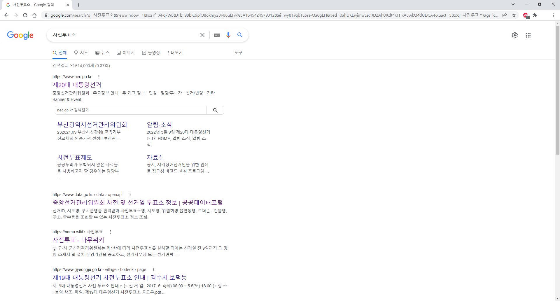 1. 구글 등 포털사이트에서 사전투표소 또는 선거관리위원회를 검색합니다.