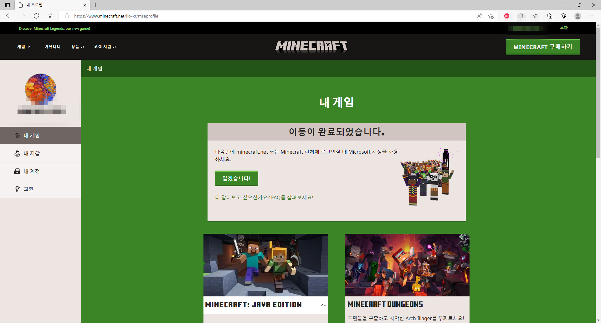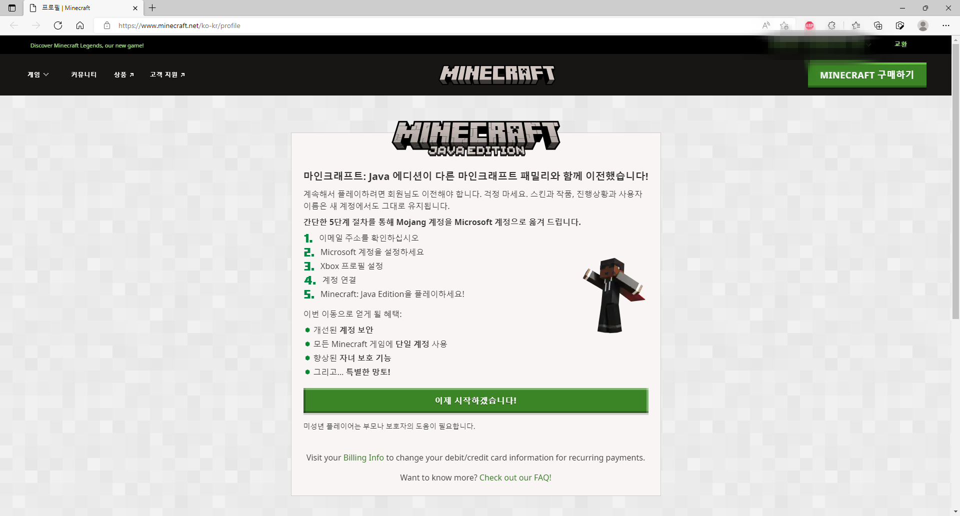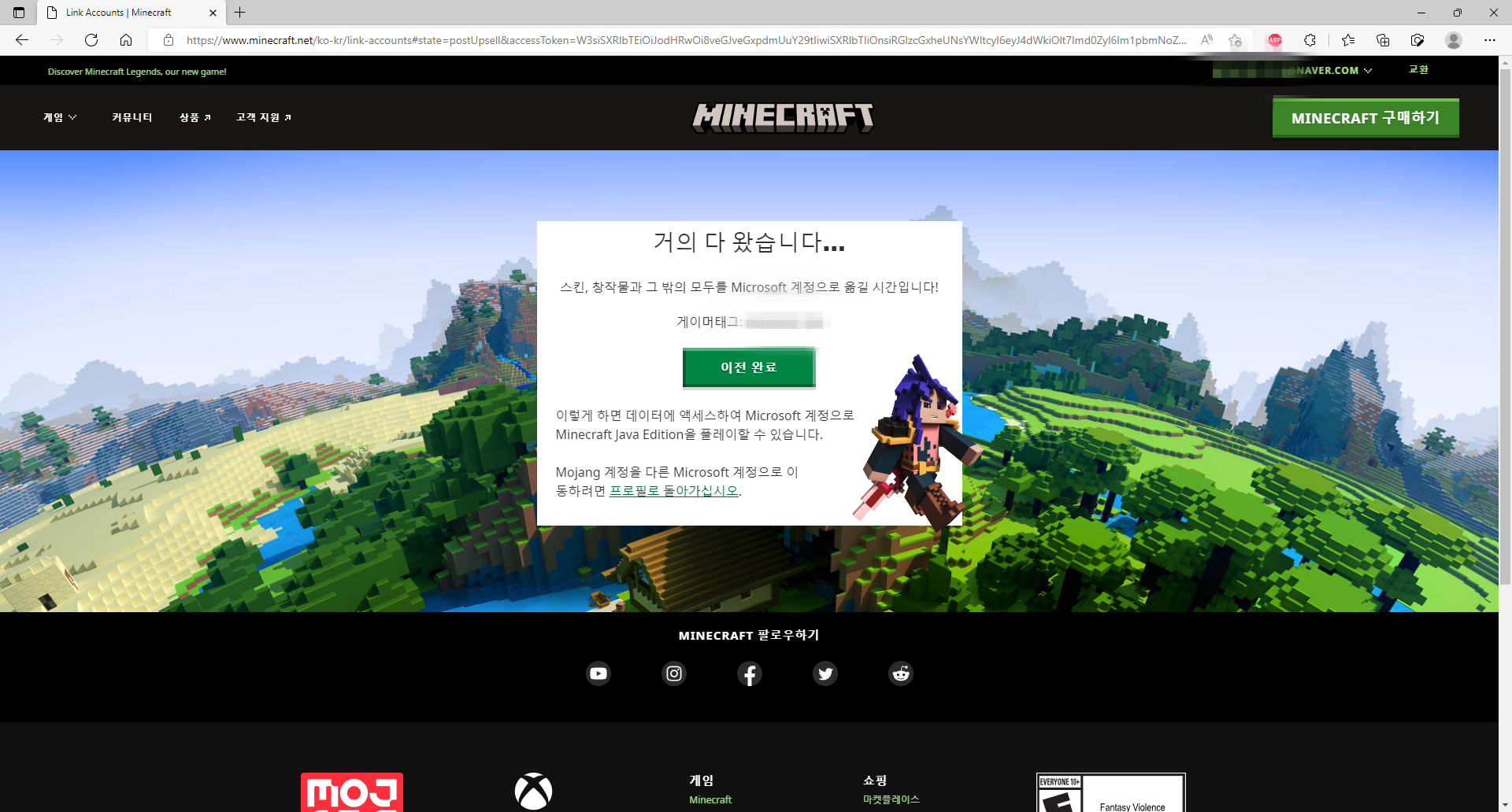 한때 성인게임화라는 문제로 전국을 시끄럽게 만들었던 마인크래프트 게임의 계정 이전이 한국에서도 지원되기 시작하였습니다.