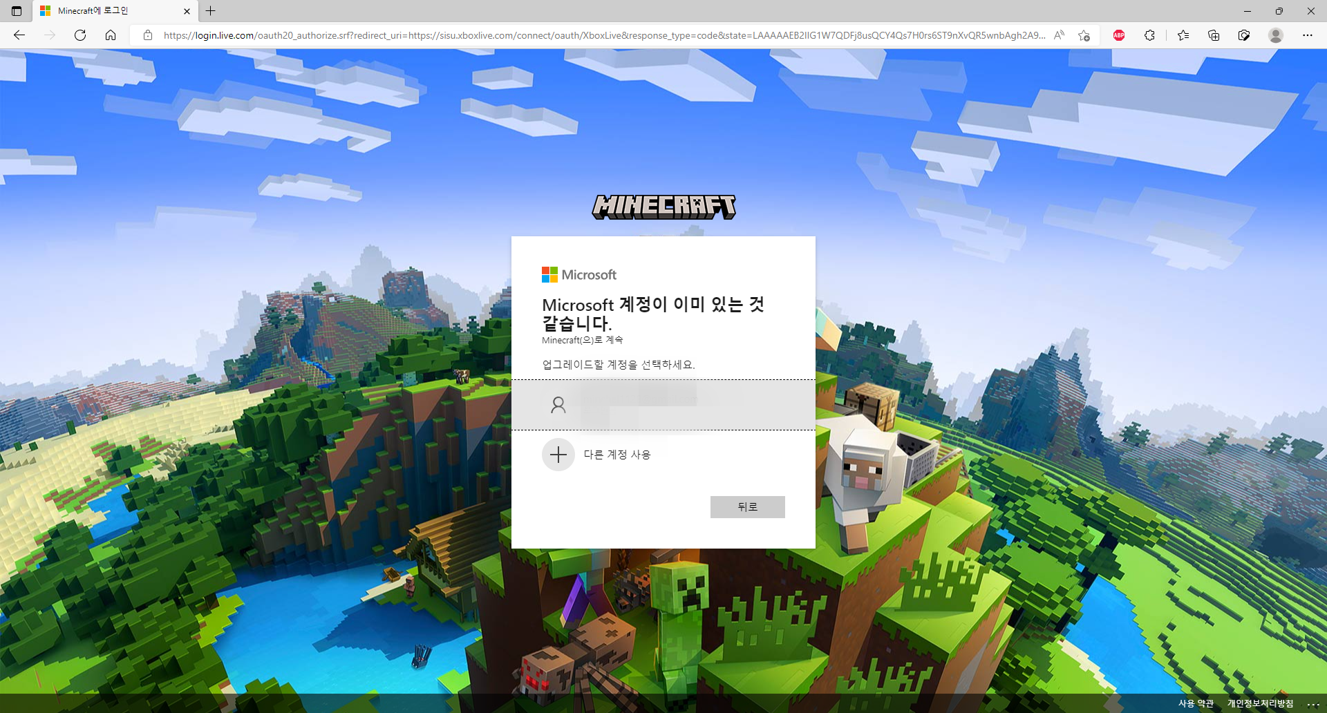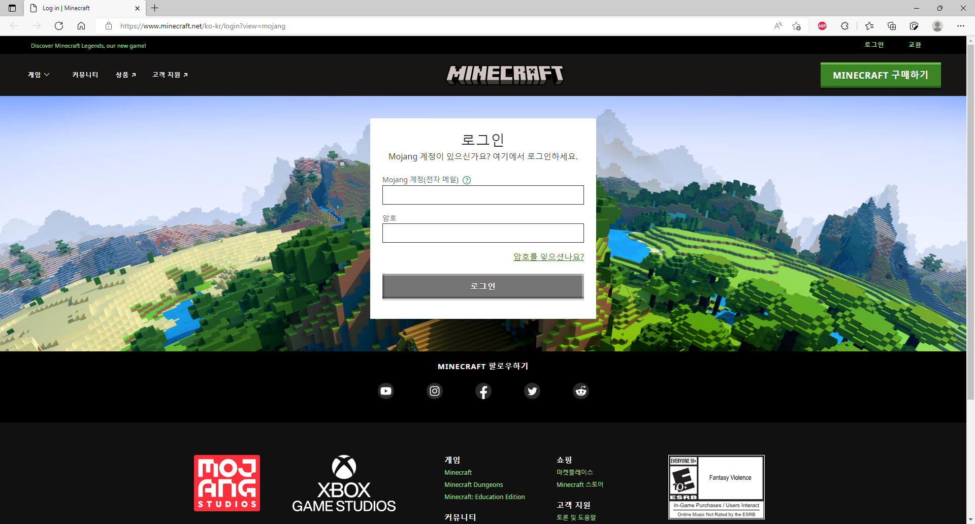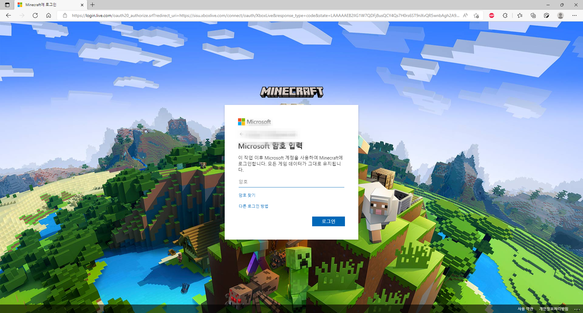 2. 웹 페이지로 넘어오게 되면 모장 계정으로 로그인을 시도합니다.