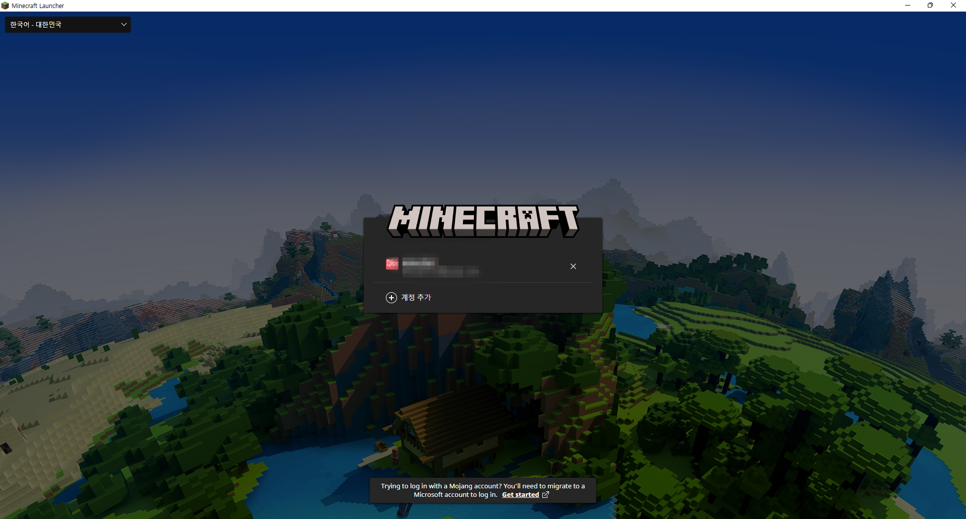 10. 물론 이전이 완료됐으니 모장 계정으로 다시 로그인할 수 없습니다. 아래의 계정 추가 버튼을 눌러서 진행합니다.