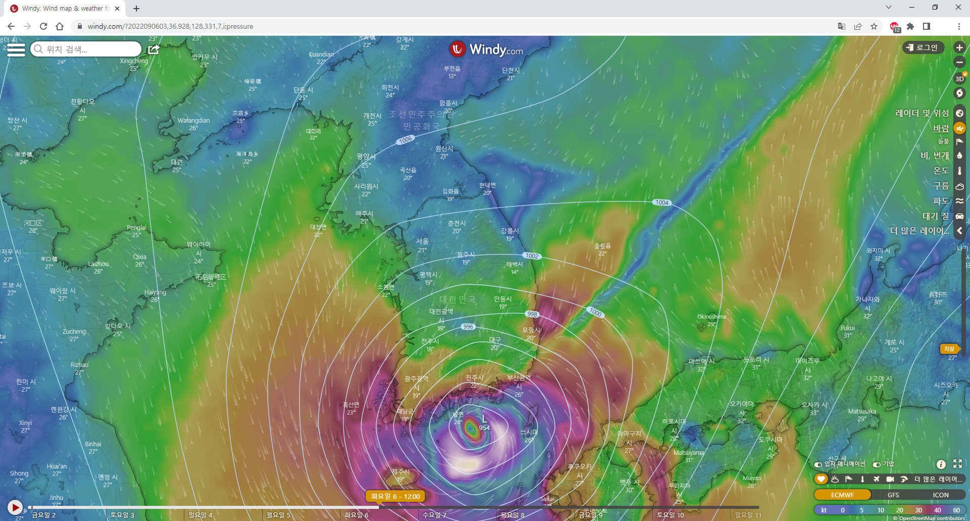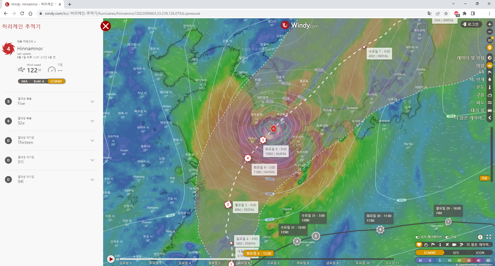 제가 찾아보는 사이트로는 크게 한국 기상청, JMA, JTWC, Windy를 사용합니다.