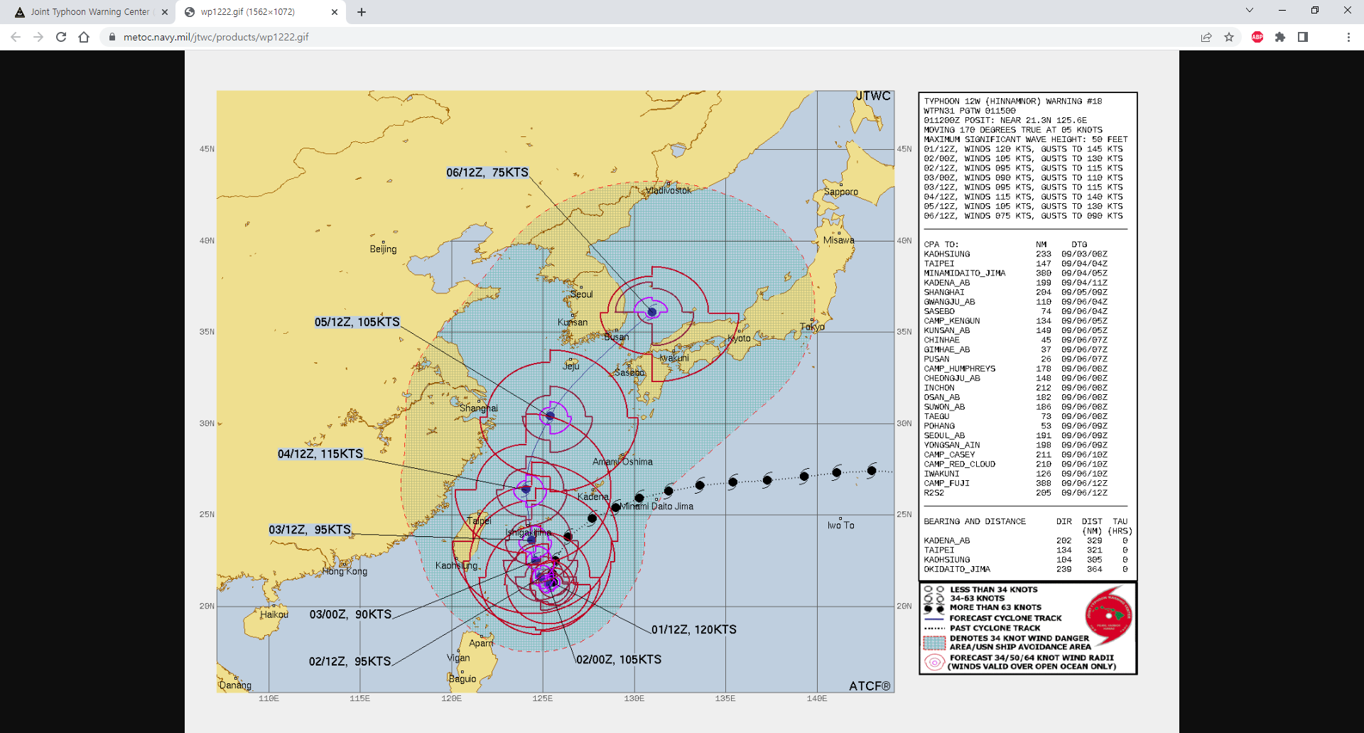 JTWC는 합동태풍경보센터로 미국 해군과 미국 공군의 전략 합동 기관으로 태풍관련 정보를 제공합니다.
