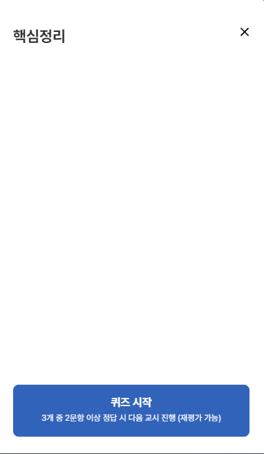 핵심정리 부분을 보고 파란색 '퀴즈 시작' 버튼을 눌러 진행합니다.