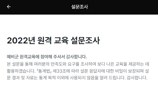 두 과정을 모두 이수하였다면 설문조사를 진행하면 됩니다.
