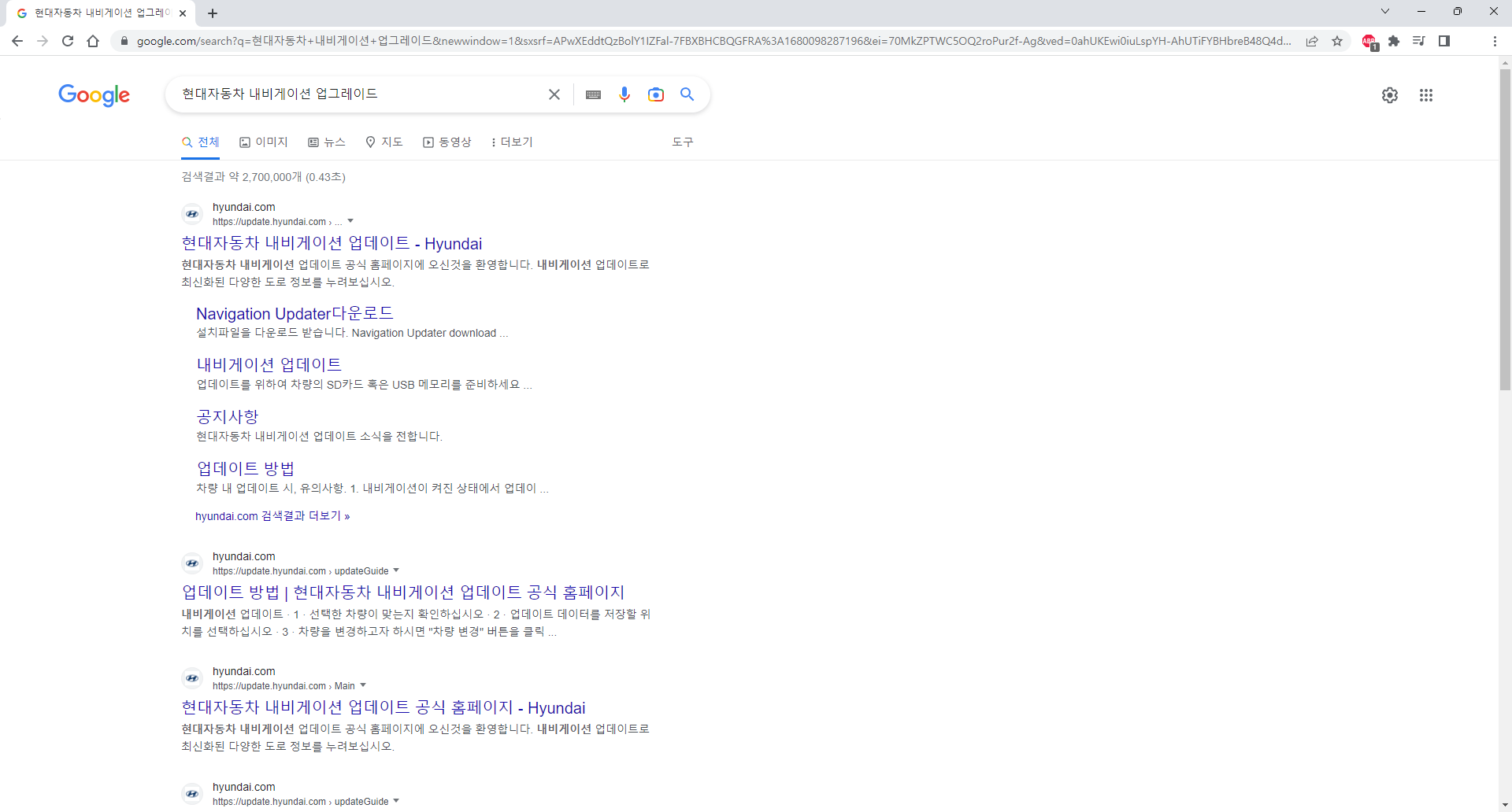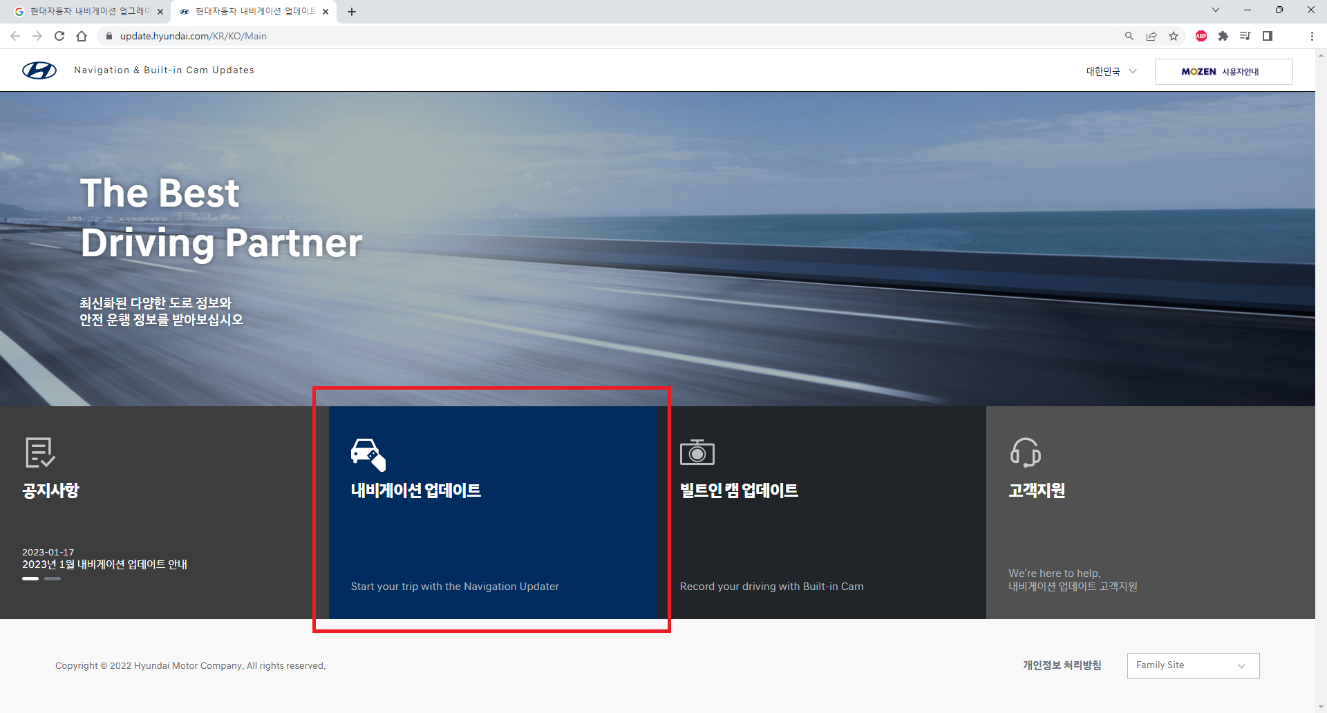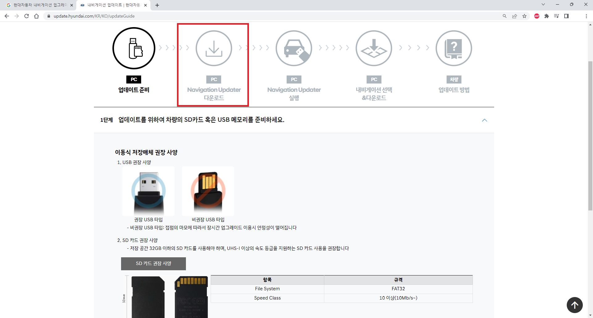 구글이나 네이버 등에서 내비게이션 업그레이드를 검색해서 현대자동차 홈페이지에 들어갑니다.