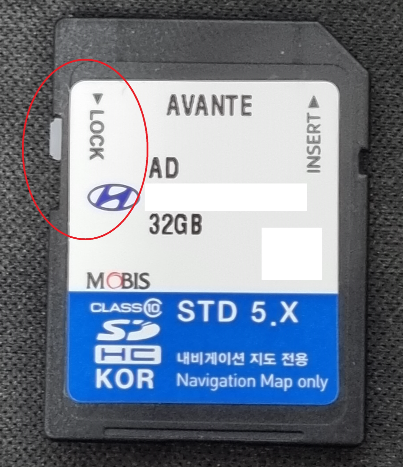 SD카드를 컴퓨터에서 분리한 다음 SD카드의 왼쪽 슬라이드 버튼을(사진상 원 부분) 위로 올려주면 SD카드 잠금이 해제가 됩니다.