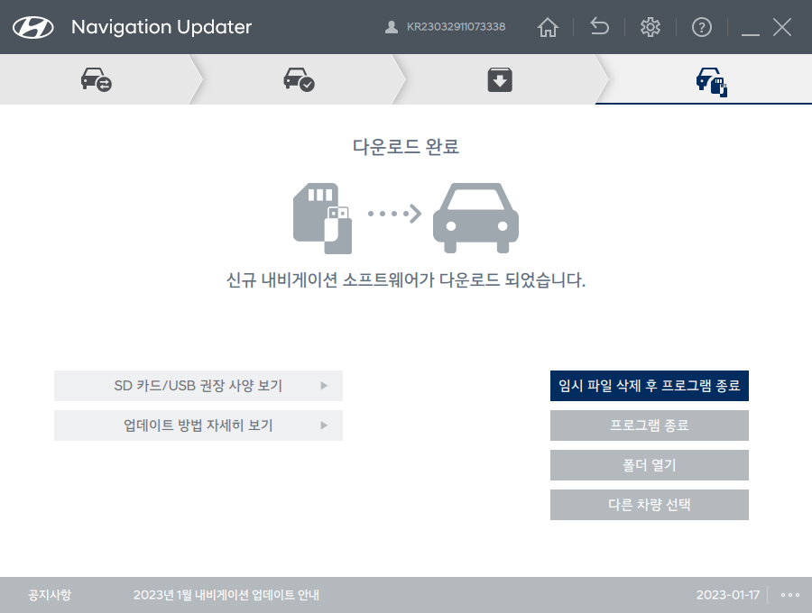 여기까지 진행되면 내비게이션 업데이트는 정상적으로 완료되었습니다.