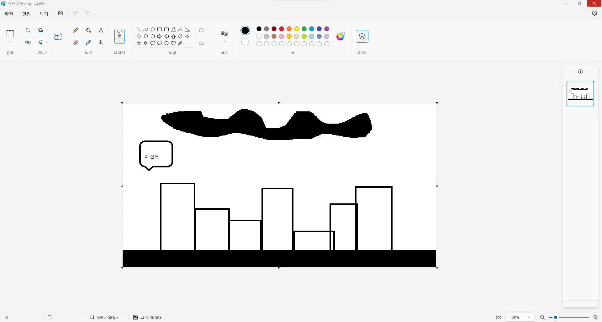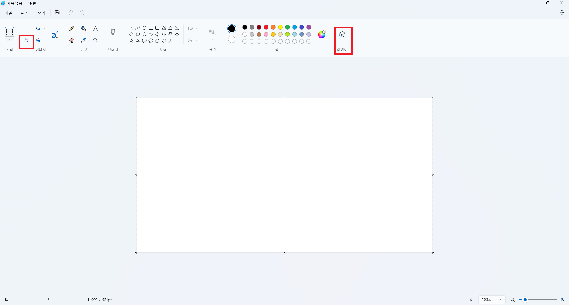 기본 그림판이 조금 바뀐 것을 볼 수 있는데 여기서 기존과 다른 부분이 두 가지 추가된 것을 볼 수 있습니다.