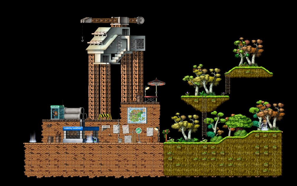 작업해 볼 대상은 메이플스토리 월드로 간단하게 만들어본 맵을 가져와서 진행해 보았습니다. 그리고 비교를 위해서 포토샵으로 같은 작업을 수행해 보았습니다.