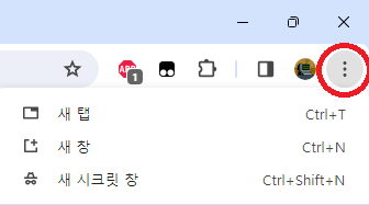 1. 크롬은 오른쪽 위에 있는 점 세 개 버튼(케밥 버튼)을 눌러서 메뉴창을 열어줍니다.