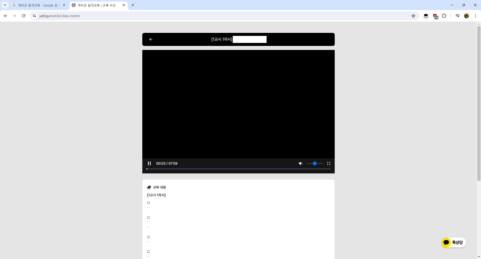 교육시작 버튼을 누르면 동영상이 자동으로 재생됩니다.
