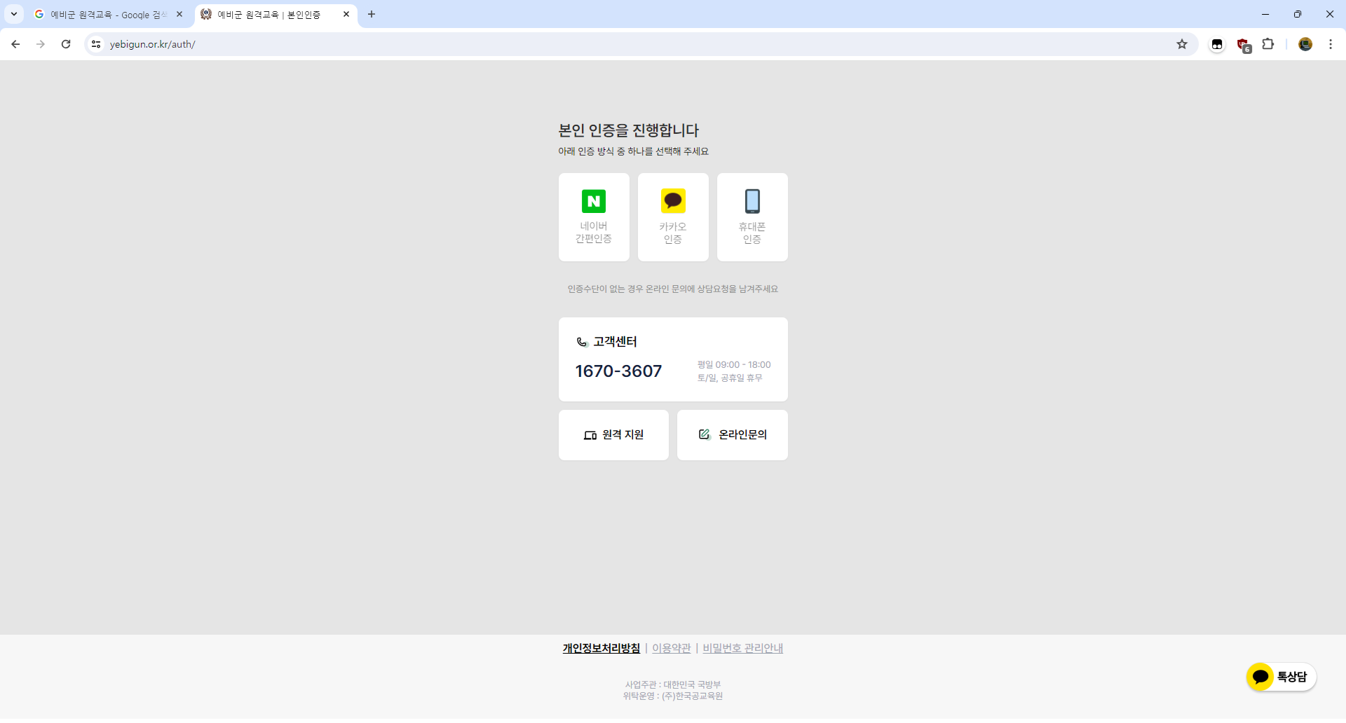 예비군 홈페이지 혹은 포털사이트에서 예비군 원격교육을 검색하여 들어갑니다.