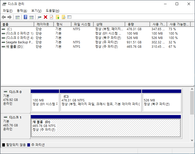 예전에는 하나의 하드디스크를 파티션을 나누어 C드라이브와 D드라이브로 나눠서 사용하는 경우가 많았습니다. 하지만 요즘은 프로그램들이 용량이 많아진 것도 있고 또한 하드디스크의 가격이 많이 내려가게 되어 여러 개를 장착하는 경우가 많아져서 파티션을 나누기보다는 통째로 하나의 드라이브에 할당하는 경우가 많습니다. 그래서 실질적으로 여기서 손을 대는 경우는 새로운 HDD혹은 SSD를 장착하고 그 장치를 사용하기 위해 할당하는 경우 이외에는 사용할 경우는 적다고 보시면 됩니다. 그리고 원하시면 이 게시글에서는 작성하지 않았으나 빠른 포맷을 진행할 수도 있습니다. 빠른 포맷을 사용하는 경우 데이터는 소실되며 복구는 가능하긴 하나 힘이 좀 드니 백업한 이후에 진행하시면 되겠습니다.