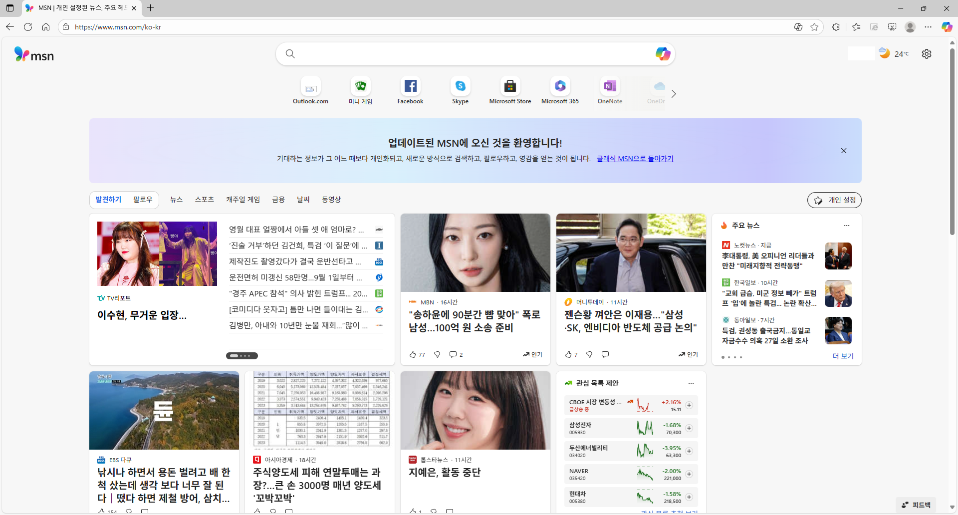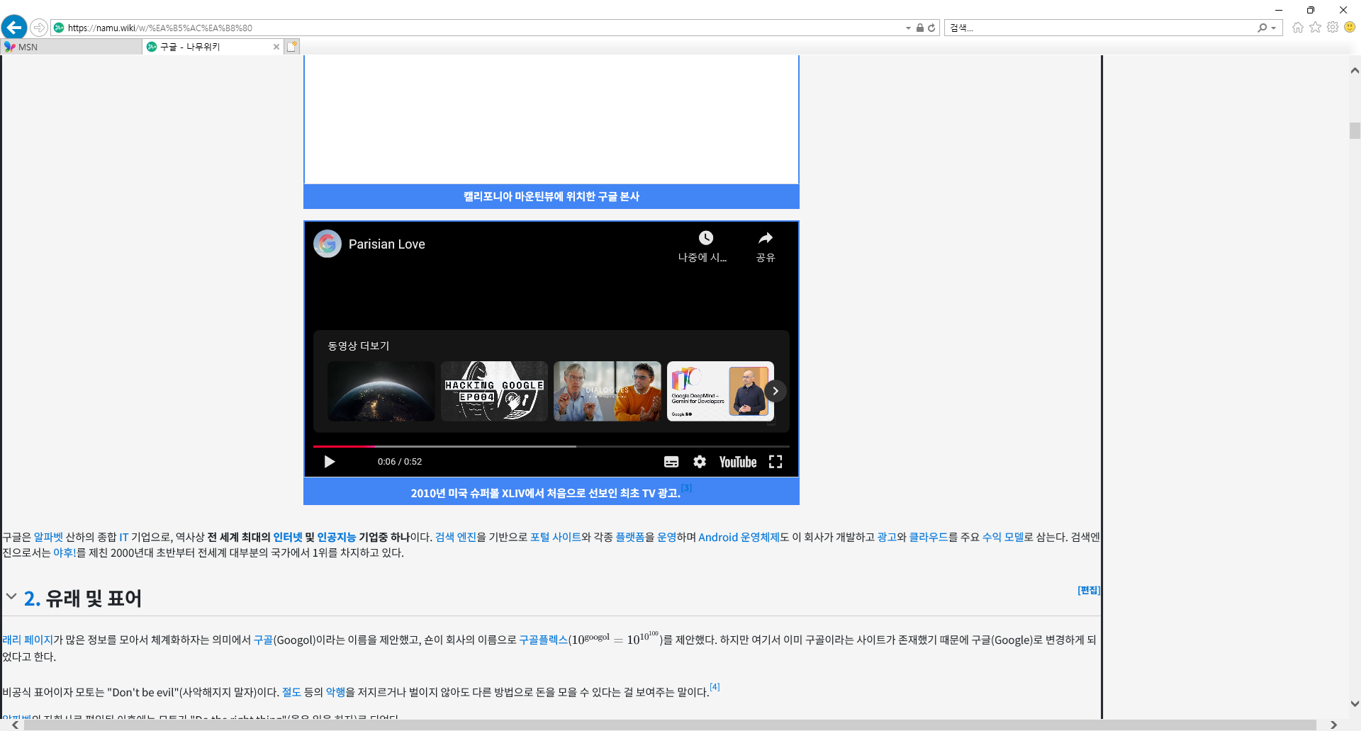 우선 인터넷 익스플로러의 기본 설정페이지인 msn 화면으로 시작하겠습니다.