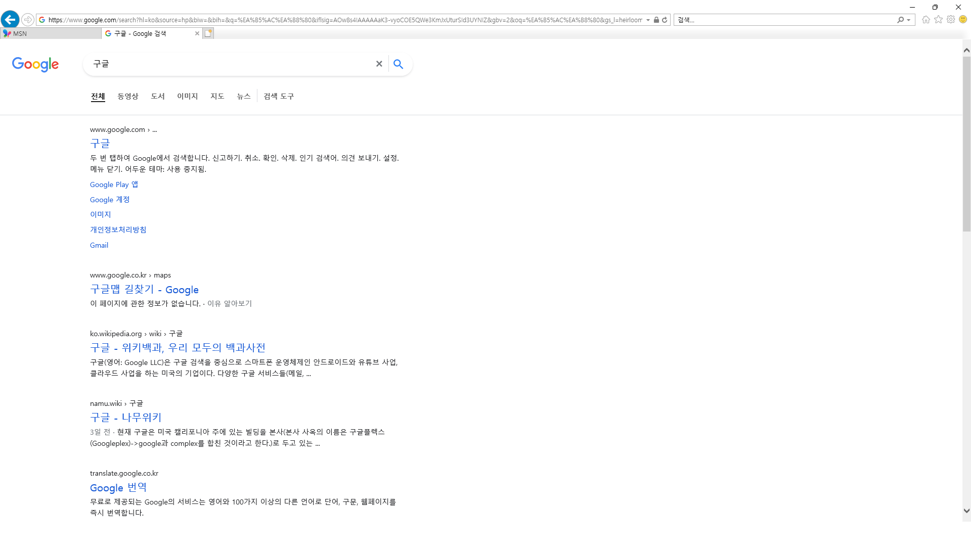 구글은 좀 약간 구형 느낌으로 바뀐 거 말고는 큰 차이가 없어 보입니다. 물론 정상화면과는 차이가 큽니다.