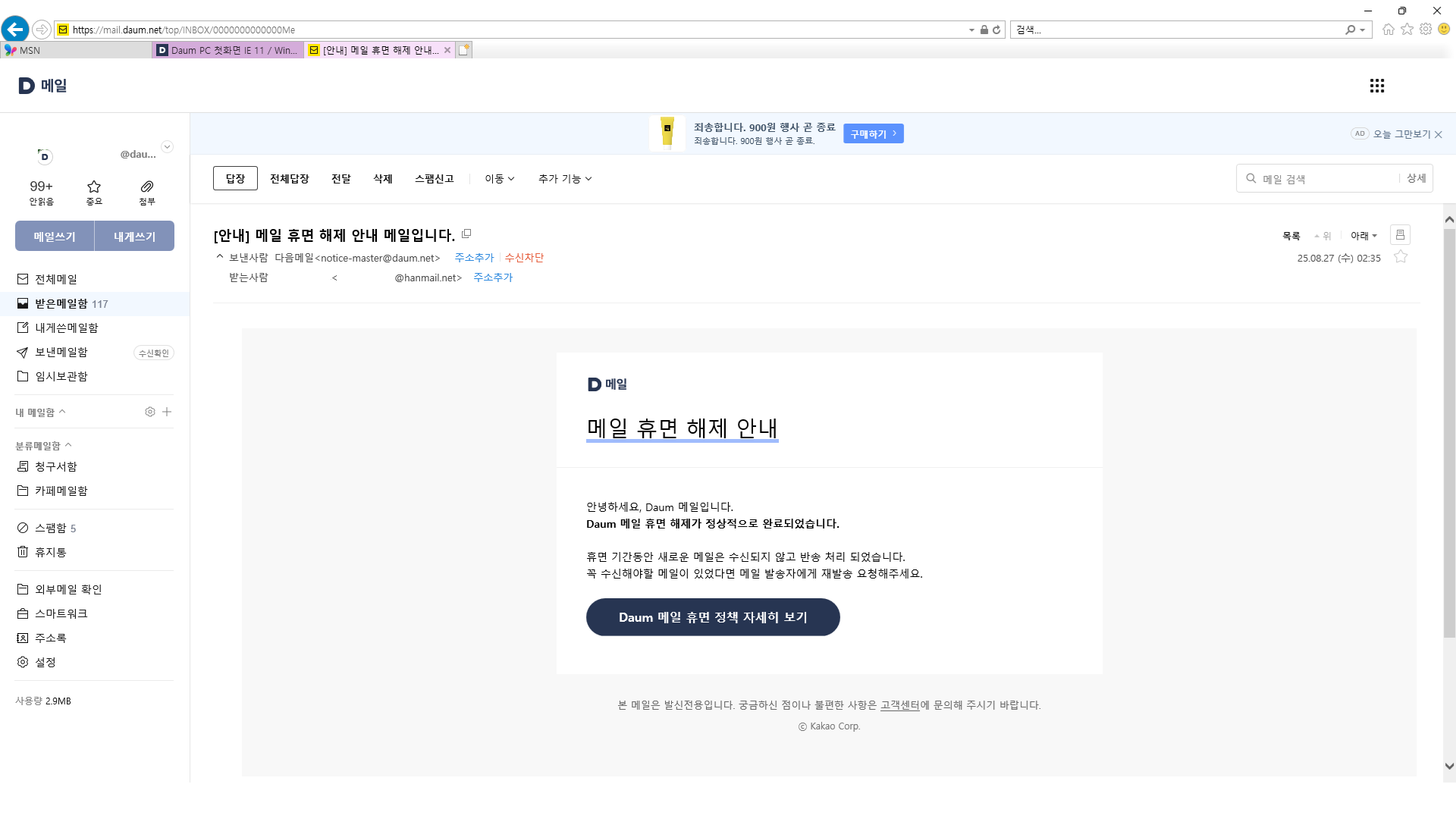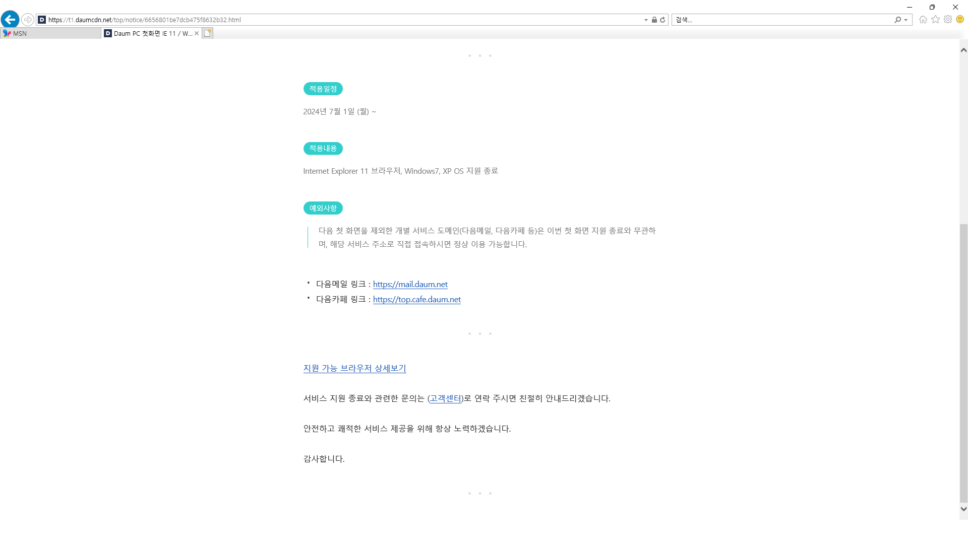 다만 다음 메일과 다음 카페는 정상적으로 운영된다고 적혀있습니다.