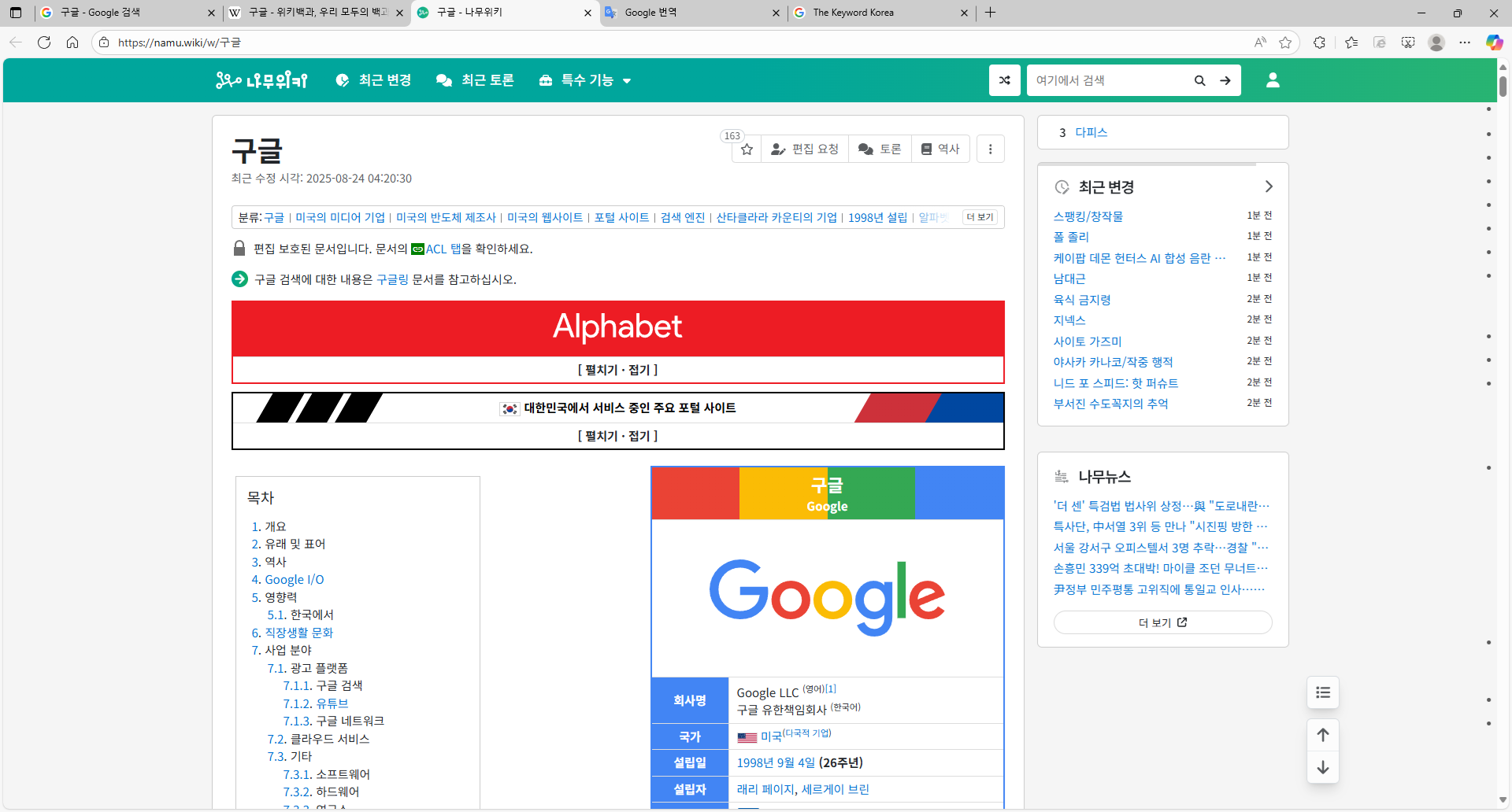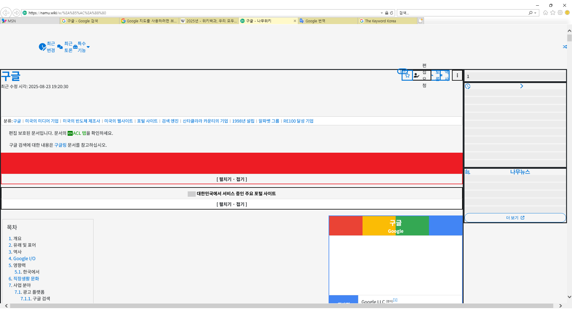 물론 검색도 정상적으로 진행되는 것을 확인할 수 있었습니다. 마침 여기에 나와있는 구글지도, 위키백과, 나무위키, 구글번역을 한번 확인해 봅시다.