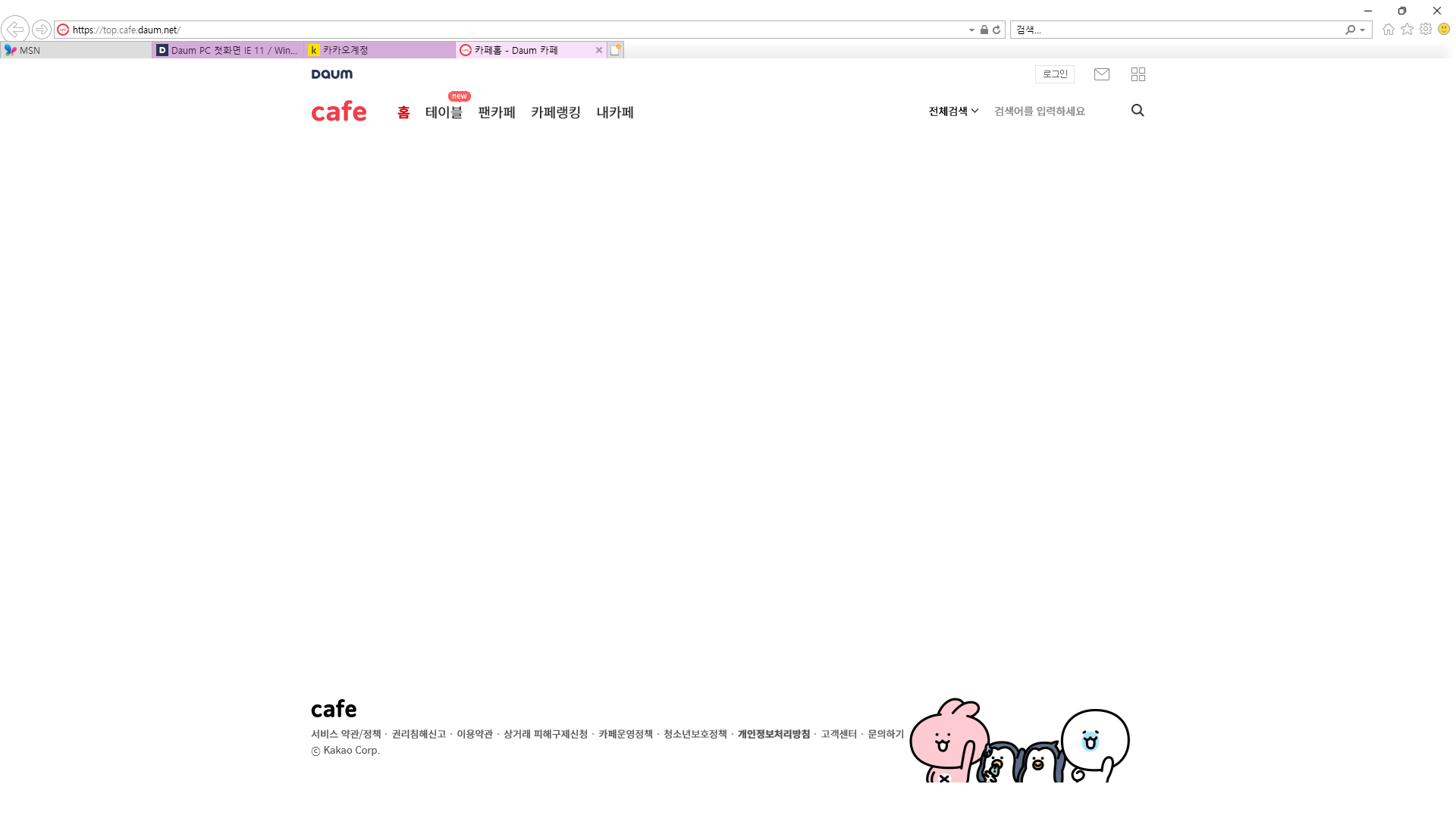 다음 카페는 정상운영된다고 적혀 있지만 아무런 화면도 보이지 않아 뜨기는 하지만 정상 이용은 불가능하였습니다.