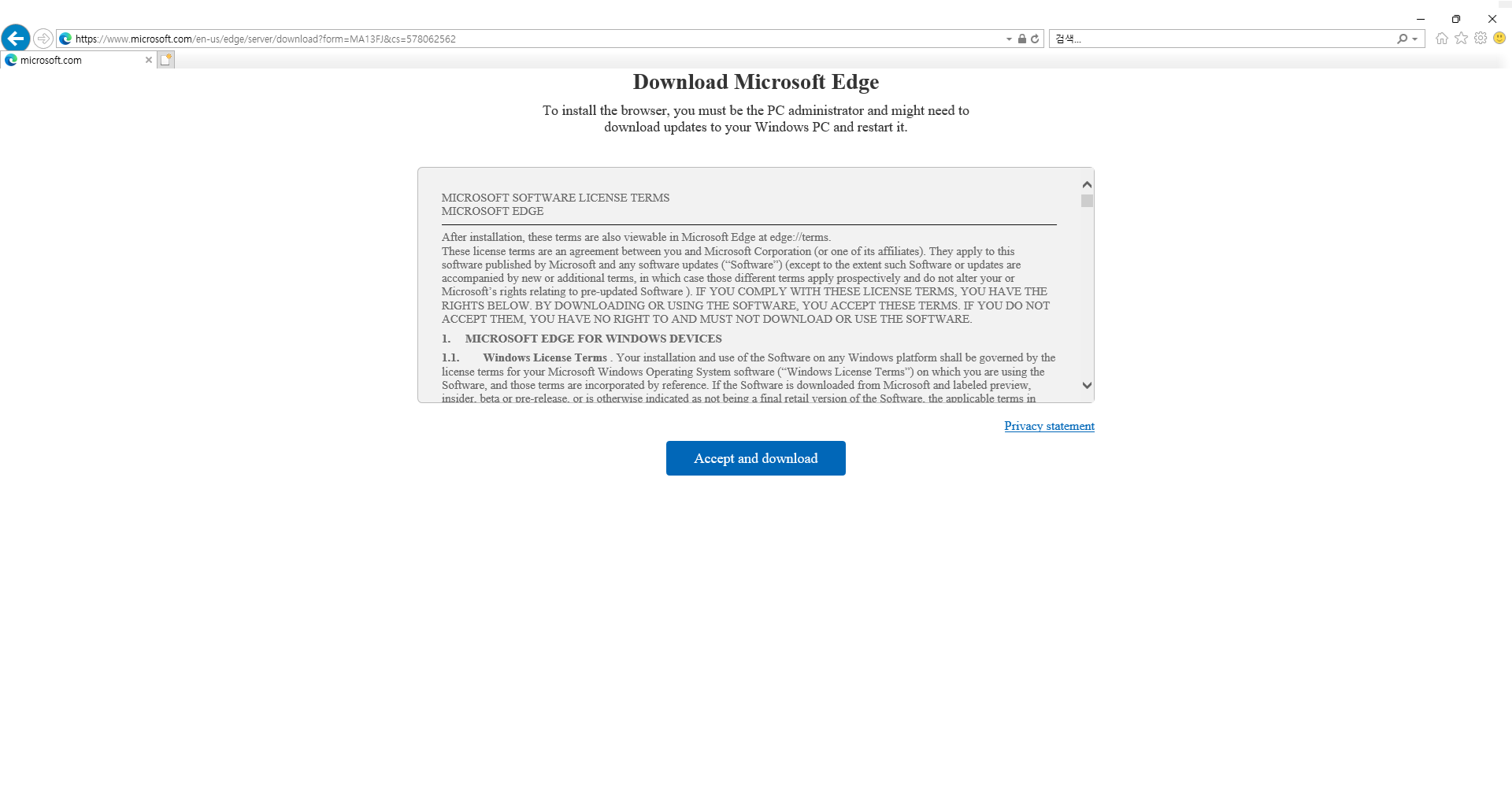 가운데 Microsoft Edge 시작 버튼을 누르게 되면 다음과 같은 설치 페이지로 넘어갑니다.