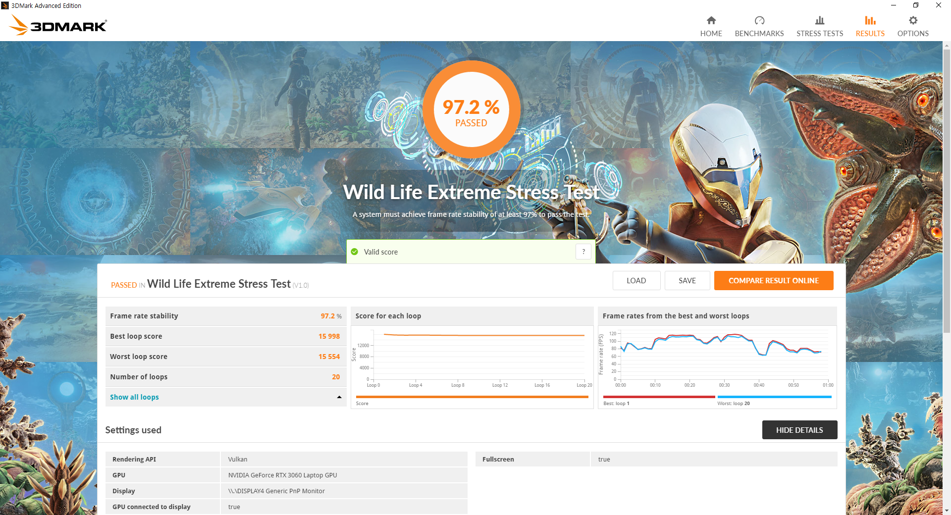 - 그래픽 성능 테스트 : 3DMark Wild Life Extreme Stress Test, 3DMark Wild Life Stress Test