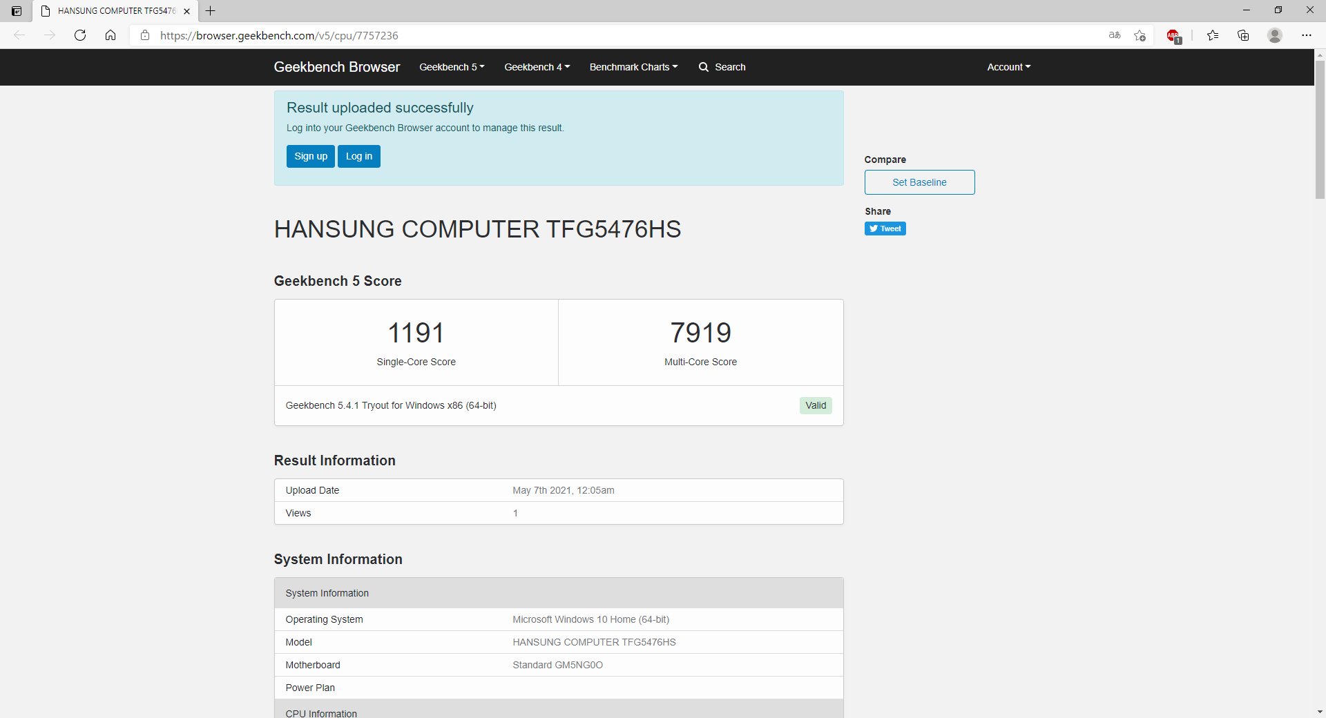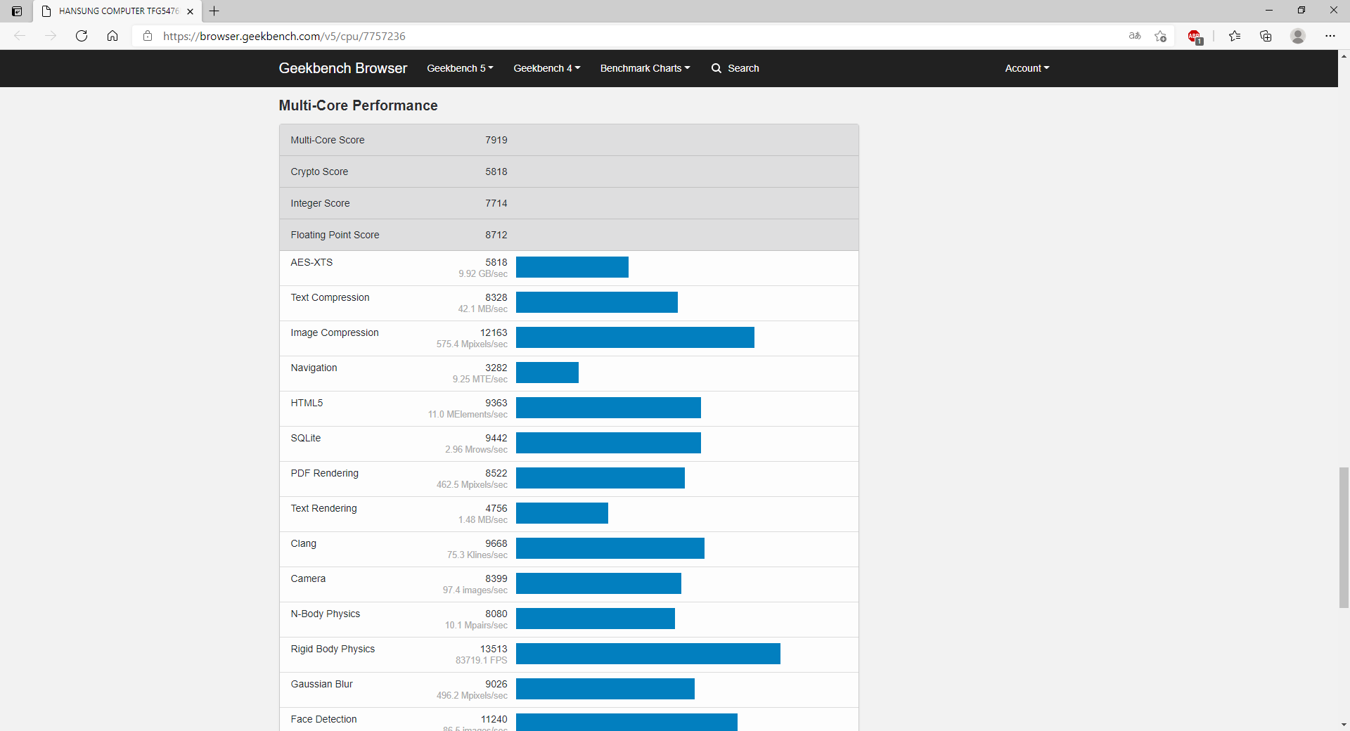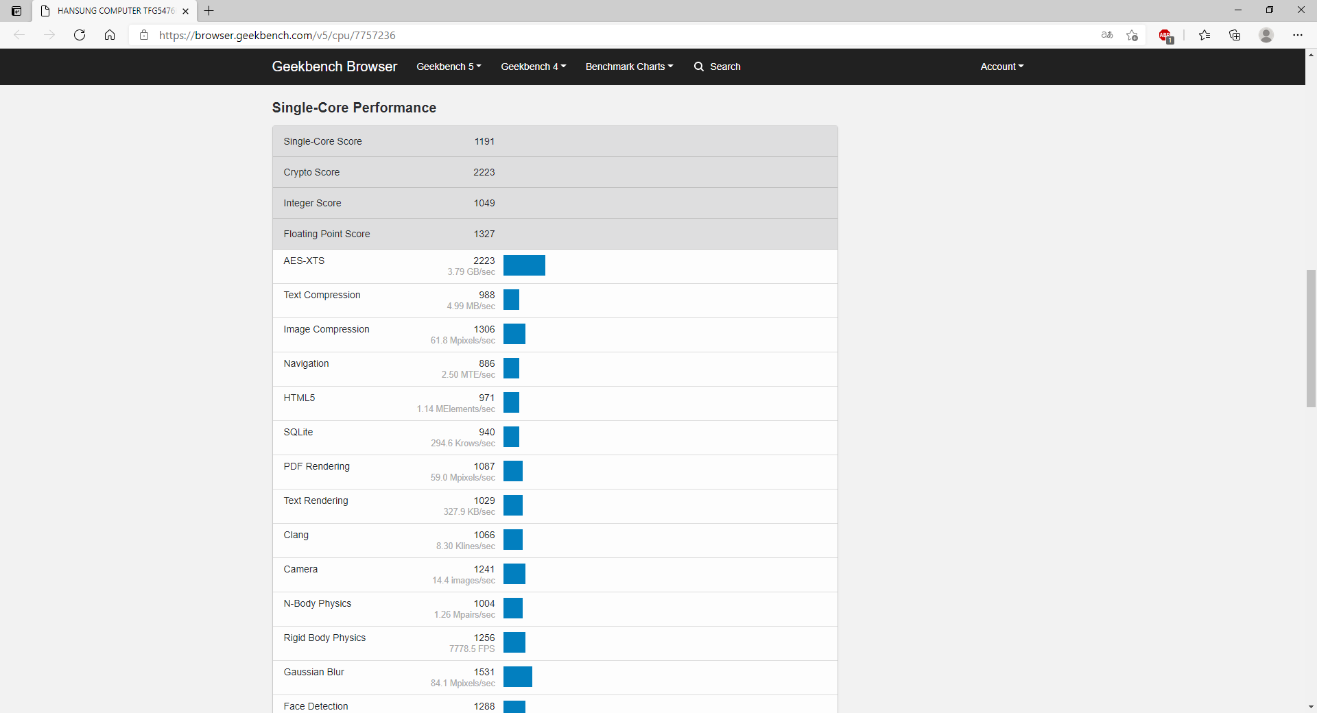 싱글 코어 : 1,191 멀티 코어 : 7,919 |