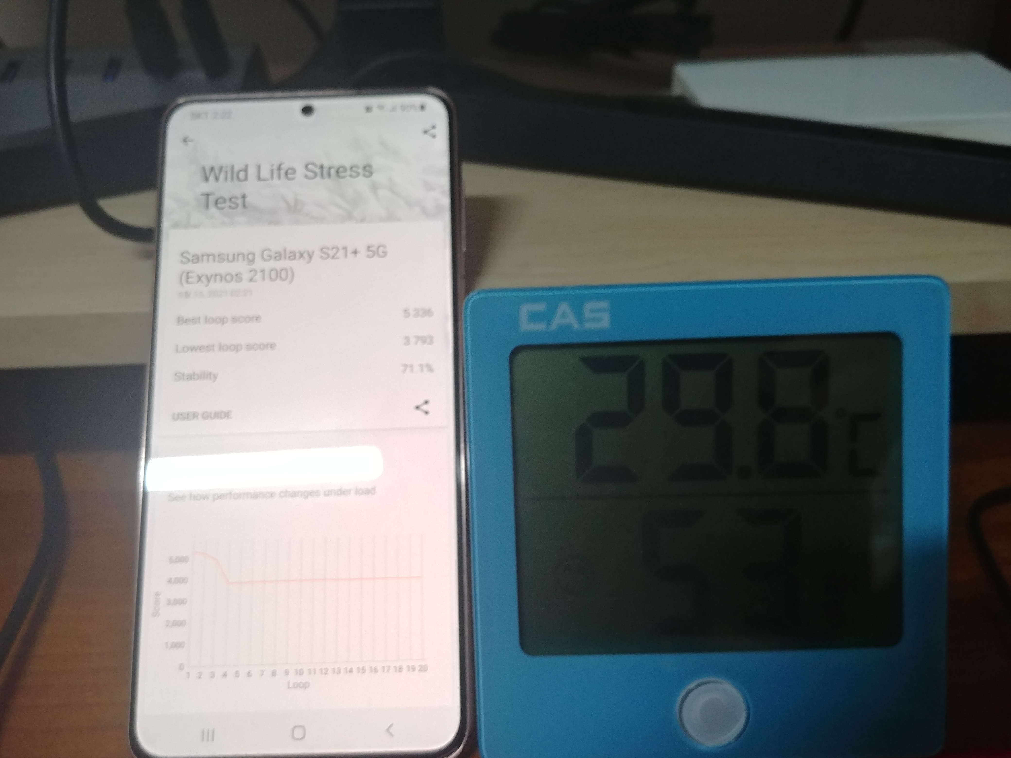 스마트폰 성능이 노트북 CPU의 87.7% 까지 따라왔지만 그래픽 성능은 최저점수로는 53.8% 최고점수로는 72%까지 따라온 것을 알 수 있었습니다. 다만 노트북의 외장 그래픽카드가 하위급인 RTX 3060(PC의 RTX 2060 혹은 GTX 1660 정도 되는 성능) 임에도 불구하고 최고 점수는 11.6% 최저점수로는 7.7% 정도밖에 안 되는 처참한 성능을 보여주어 아직은 그래픽 부분에서 스마트폰의 성능이 PC에는 못 미치는 것을 알 수 있었습니다. 차기 시리즈부터는 삼성은 AMD와 협업한 그래픽 칩셋을 탑재한 스마트폰을 출시한다고 하니 개선된 모습을 볼 수 있을 것이라고 기대됩니다.