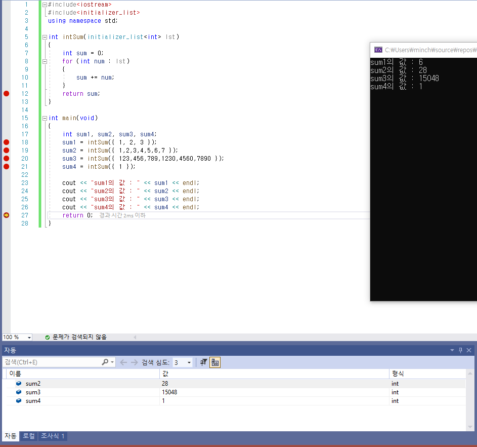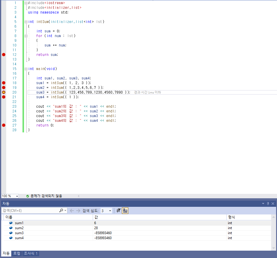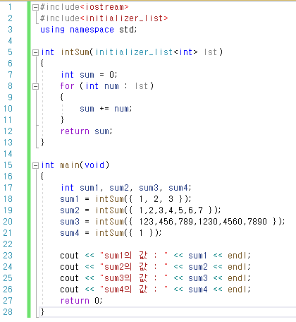 int intSum(initializer_list<int> lst)//이니셜라이저 설정