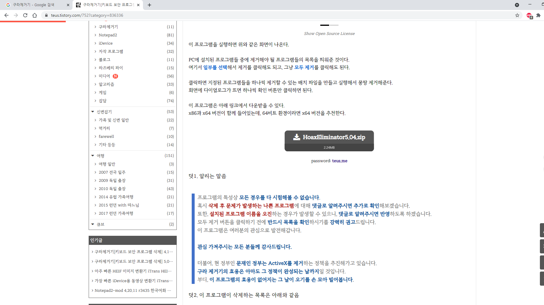 인터넷에서 구라 제거기를 검색해서 다운로드하여 줍니다. 해당 프로그램은 개인이 만든 프로그램으로 해당 개발자 티스토리 블로그에서 배포하고 있습니다.