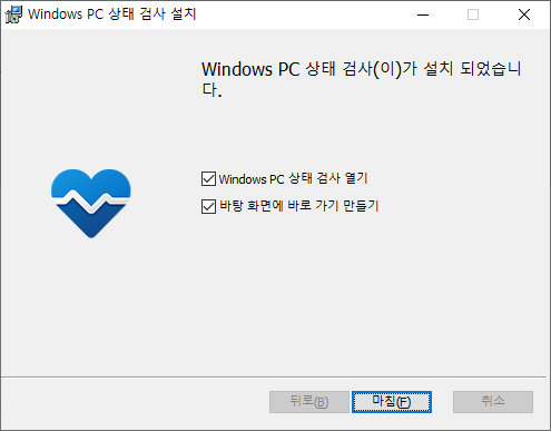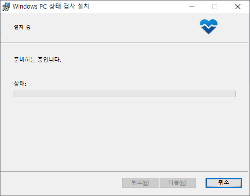 실행하면 PC 상태 검사 설치 프로그램이 뜨게 됩니다. 여기서 동의 설치 버튼을 눌러줍니다.