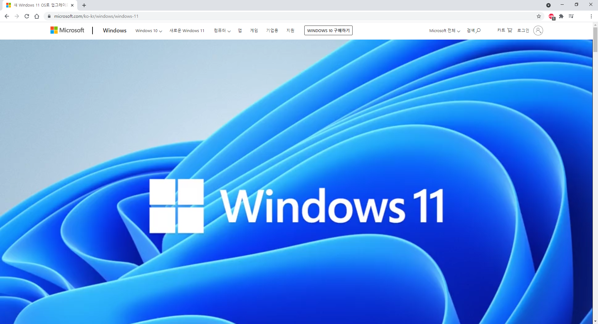 마이크로 소프트 윈도우 11 메인 홈페이지로 들어갑니다.(해당 페이지는 한국 시간으로 2021년 6월 25일부터 열렸습니다.)
