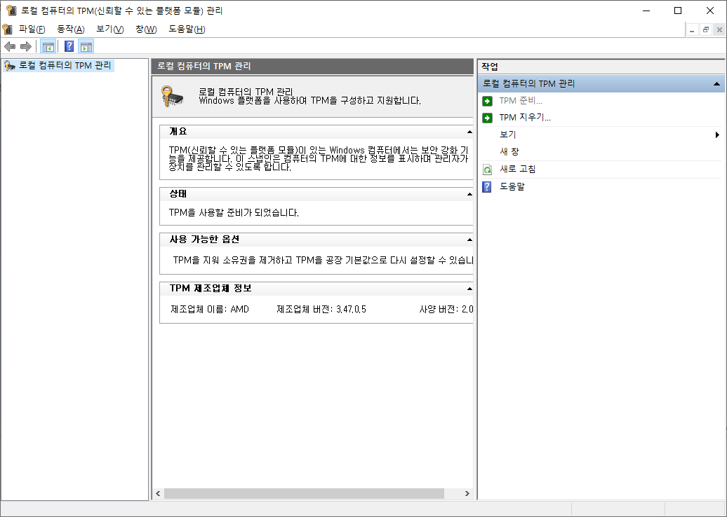 그리고 TPM을 사용하고 있는지 확인하는 방법은 다음과 같습니다.