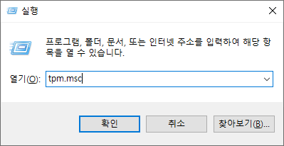 실행 창을 열어 tpm.msc를 치고 확인 버튼을 누릅니다.