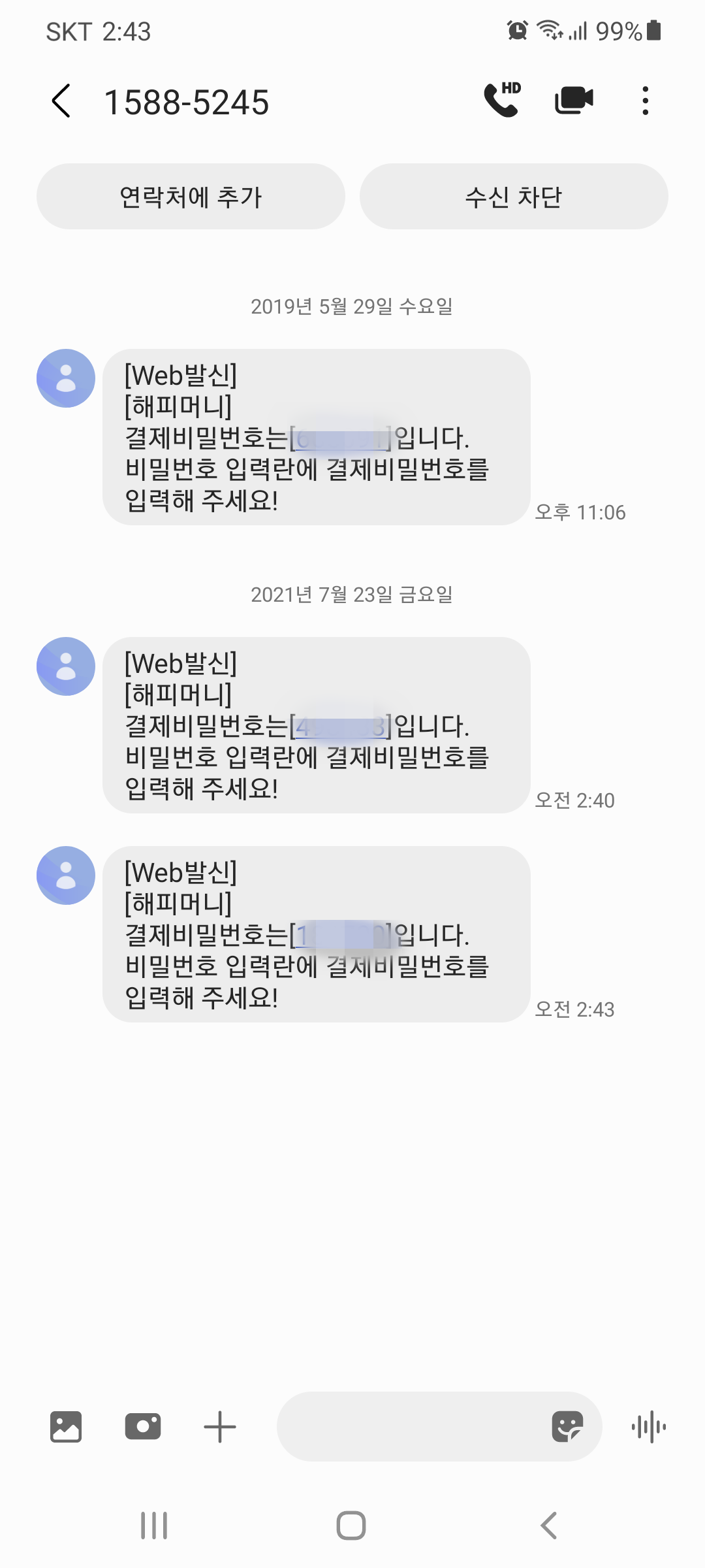 전송되었다고 뜨면 문자메시지로 날아오게 됩니다.
