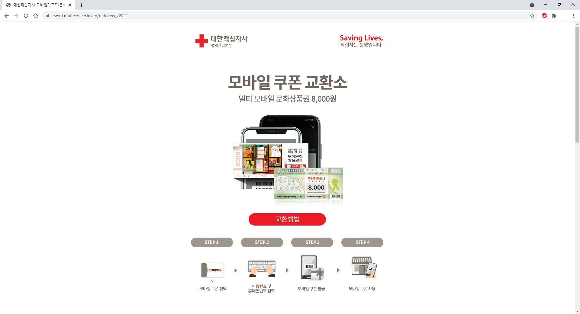 사이트 주소 옆의 링크를 누르면 됩니다. https://event.multicon.co.kr/ep/redcross_v2021