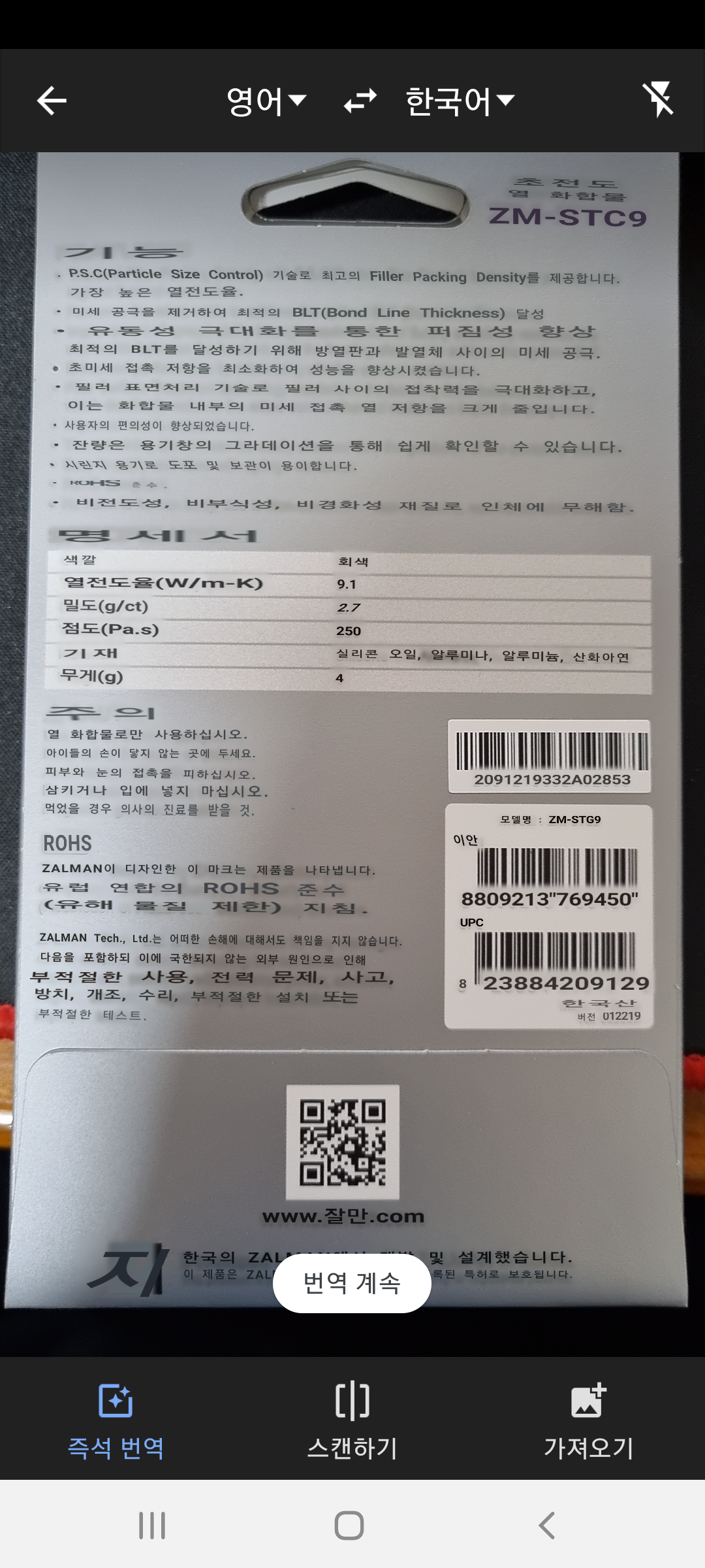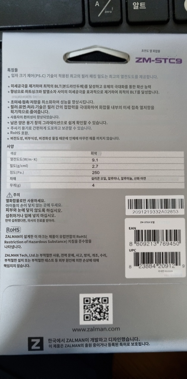 잘만에서 만든 서멀구리스 표지를 그냥 카메라로 찍은 화면입니다.
