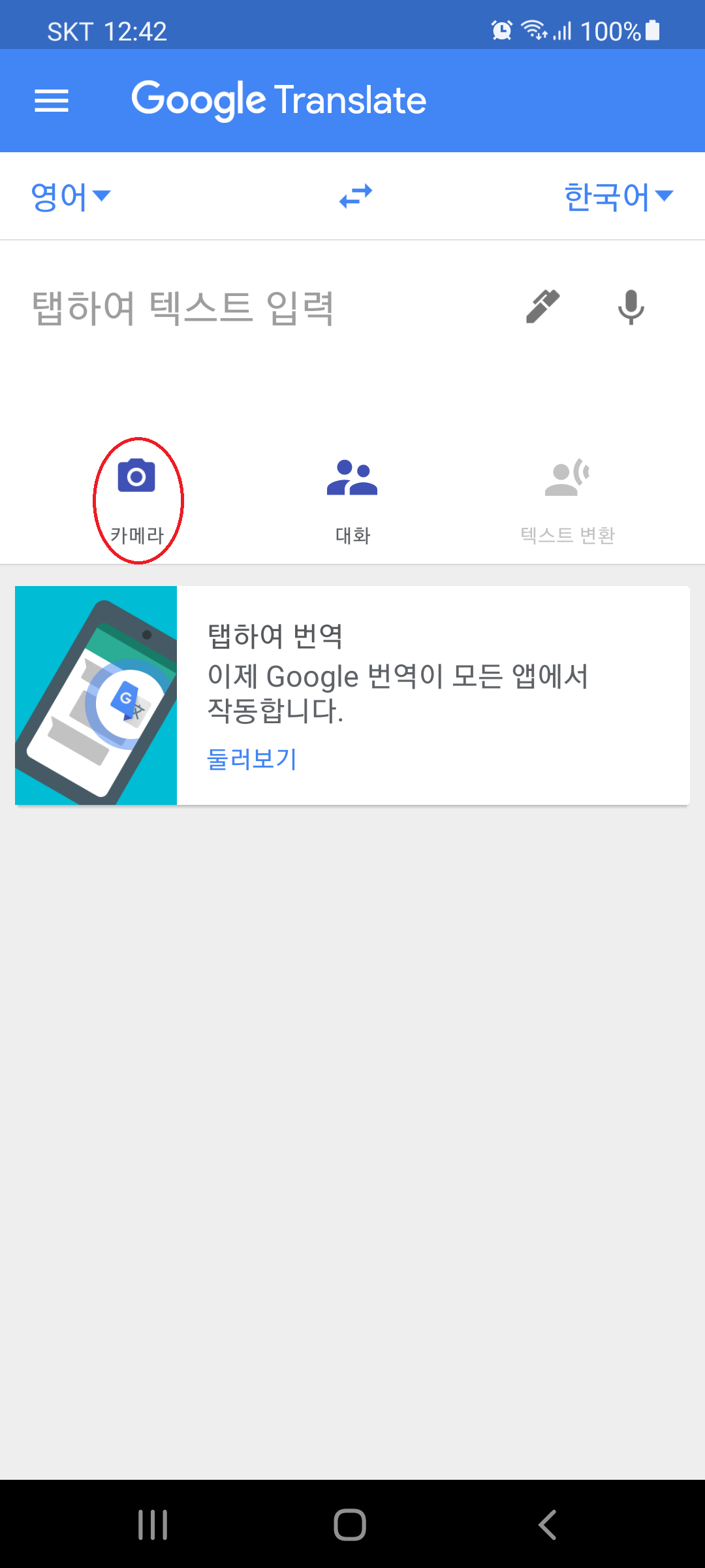 카메라로 촬영한 후 전체를 번역한 화면입니다.(근데 알트 하고 한/영은 왜 같이 번역된 거지?)