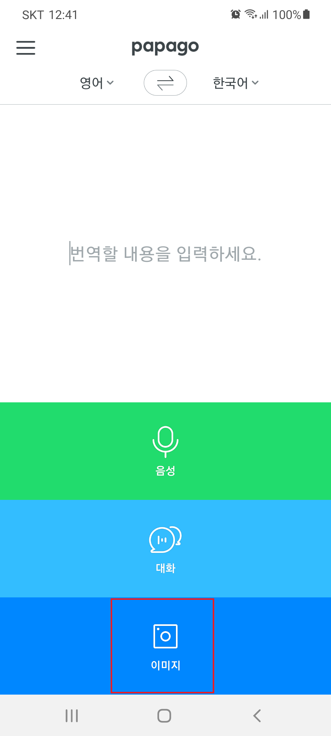 파파고에서 아래의 이미지 버튼을 눌러줍니다.