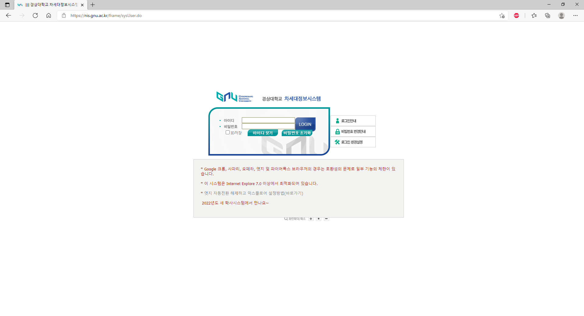 사실 적절한 사이트를 찾지는 못해서 제가 재학했던 대학교의 학생 시스템을 예시로 사용했습니다.